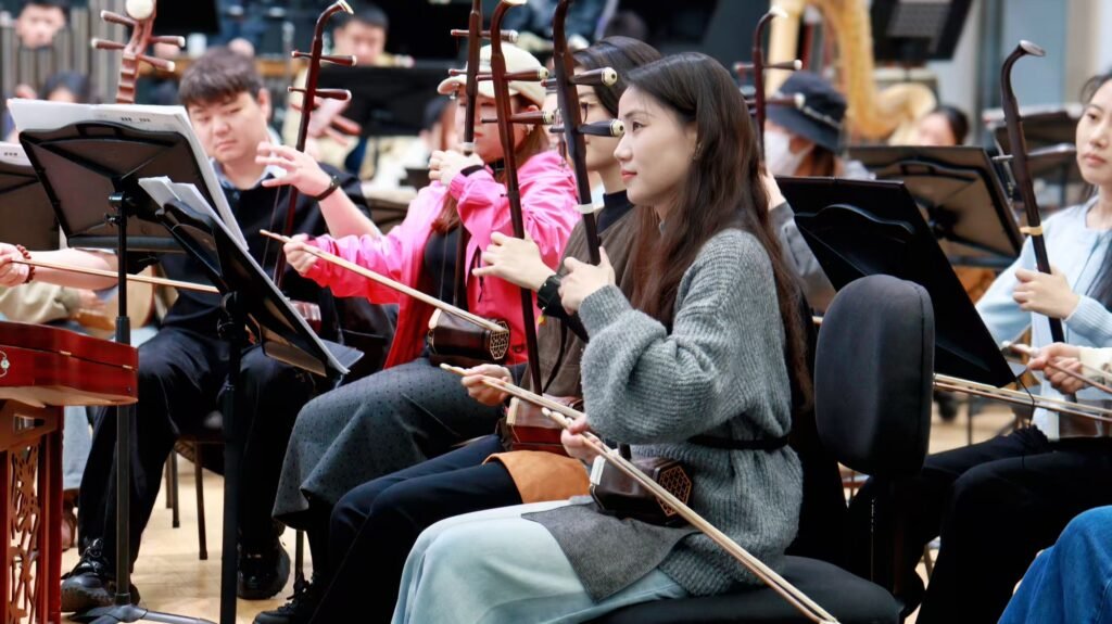 Wuxi’de yer alan şehir orkestrası olan Wuxi Ulusal Orkestrası (无锡民族乐团), bir yandan klasikleşmiş Çin müziği eserlerini seslendirmekte, bir yandan da yenilikçi ve markalaşmış konser serileri düzenlemektedir. Aynı Türk müziğinde olduğu gibi gelenekselleşmiş halk müzikleri de senfoni orkestralarının marifetiyle keman, çello, bas ile buluşup özgün bir ahenk yaratmaktadır. Örneğin, “İkinci Erhu Konçertosu – Taihu Manzarası” (《二胡第二协奏曲——太湖风情》) ve “Liangxi Ses Şiiri” (《梁溪音诗》) gibi eserler Wuxi Ulusal Orkestrası tarafından sahnelenmiş olup eyalet seviyesinde ödüllere layık görülmüştür. Wuxi Ulusal Orkestrası bünyesinde bulunan Tianyun Kulübü (天韵社) de kayda değer çalışmalar yapmaktadır. Geleneksel Çin Operası Sichuan merkezli olup dünyaca tanınan versiyonu Pekin Operası’dır. Fakat Çin’in opera kültürü sadece bununla sınırlı değildir. Bu bölgede üretilmiş tarihi Kunqu Operası da yine bu kulüp tarafından sergilenmektedir. Merkez bina içinde bulunan eğitim merkezi sayesinde de istekli ve yetenekli gençler, gözetmen ve eğitimciler eşliğinde senfoni orkestrasının temellerini atmaktadır. Belirtmek gerekir ki yine orkestranın baş enstrümanı Erhu’dur.